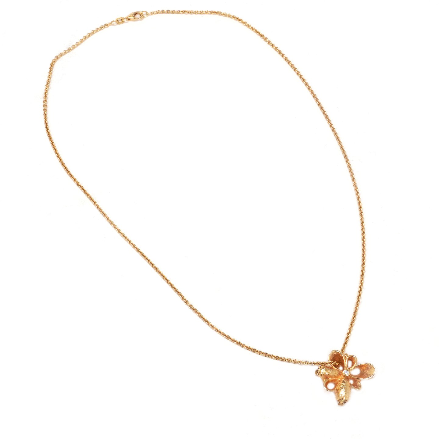 14kt gold Necklace with a Per Borup Violina pendant with a diamond of circa 0,01ct.