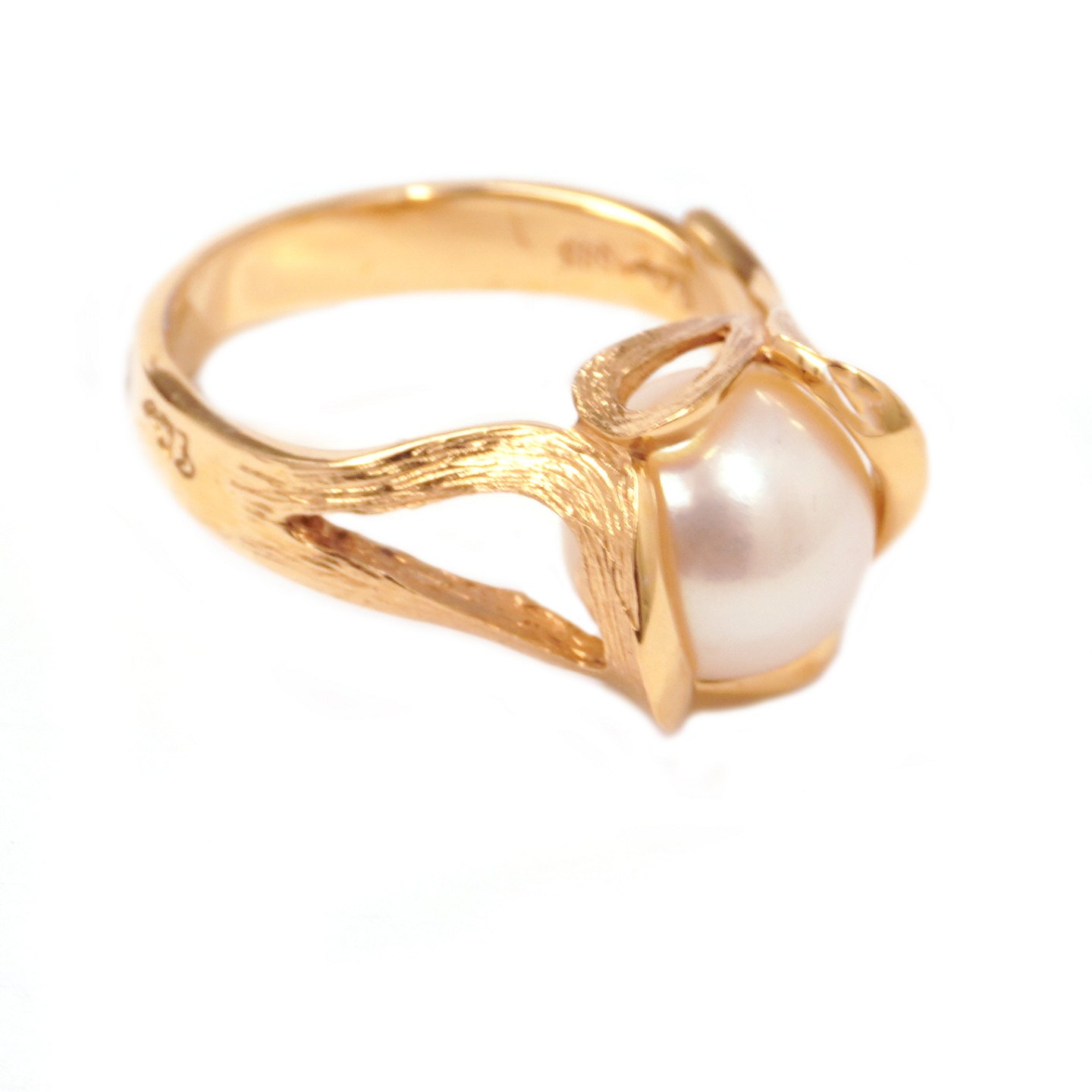 14kt gold Per Borup, Denmark, Changeling Ring with a pearl