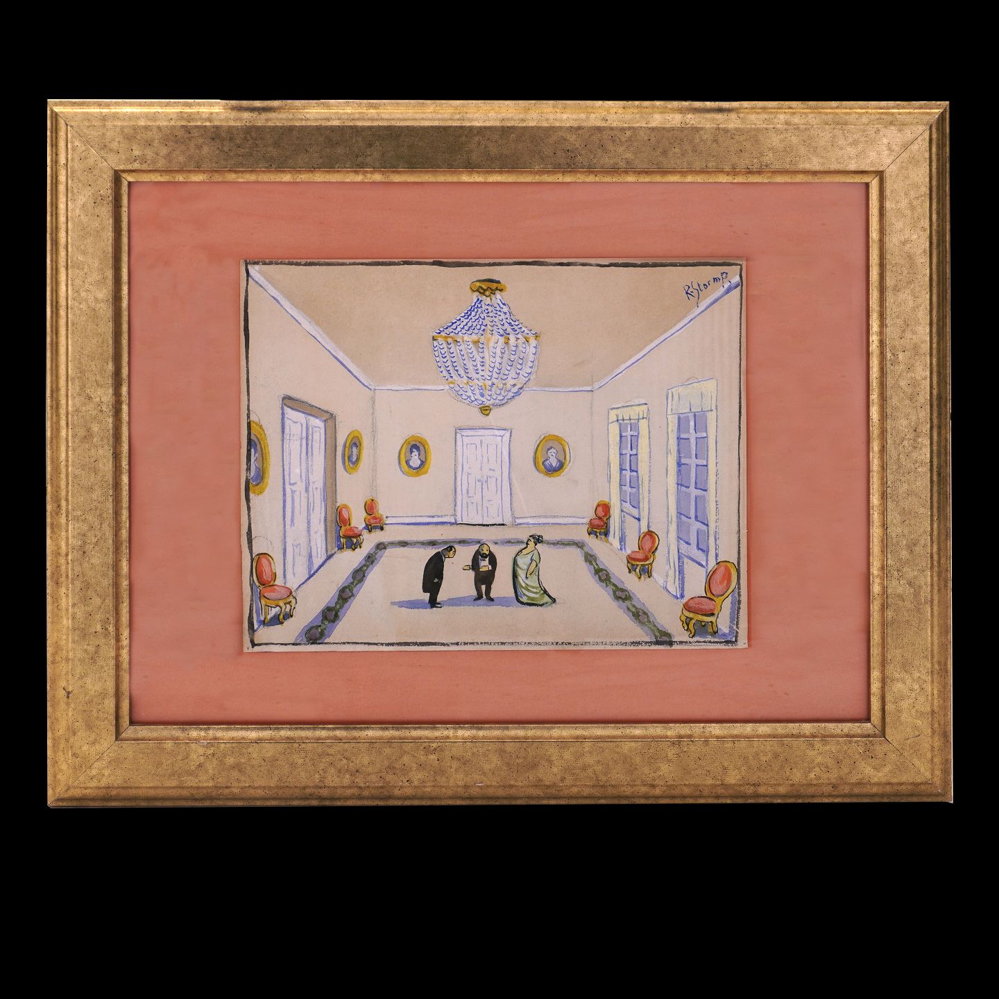 Robert Storm Petersen, 1882-1949, akvarel med motiv i form af mand i audiens