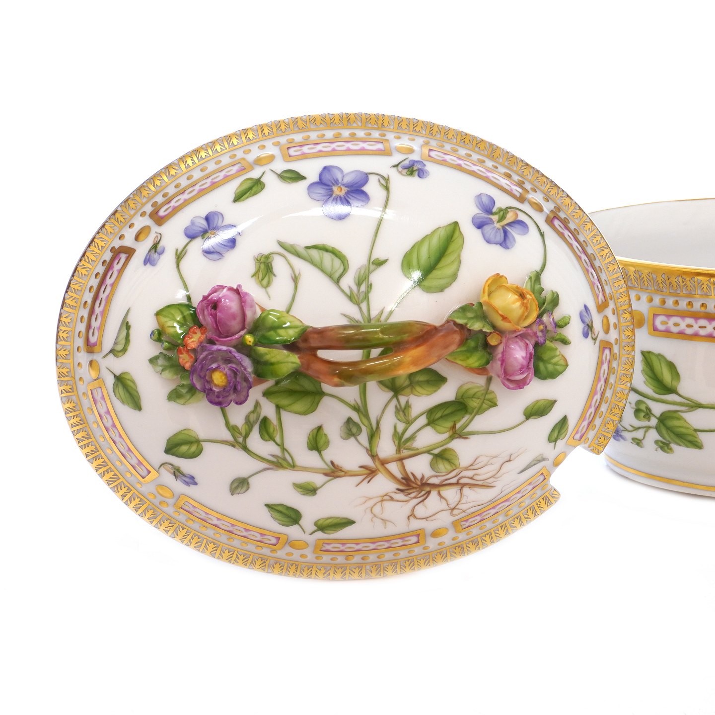 Flora Danica stor sukkerskål 3582. Royal Copenhagen Flora Danica stor sukkerskål 3582 "Viola Canina L.". H: 13cm. L: 16cm