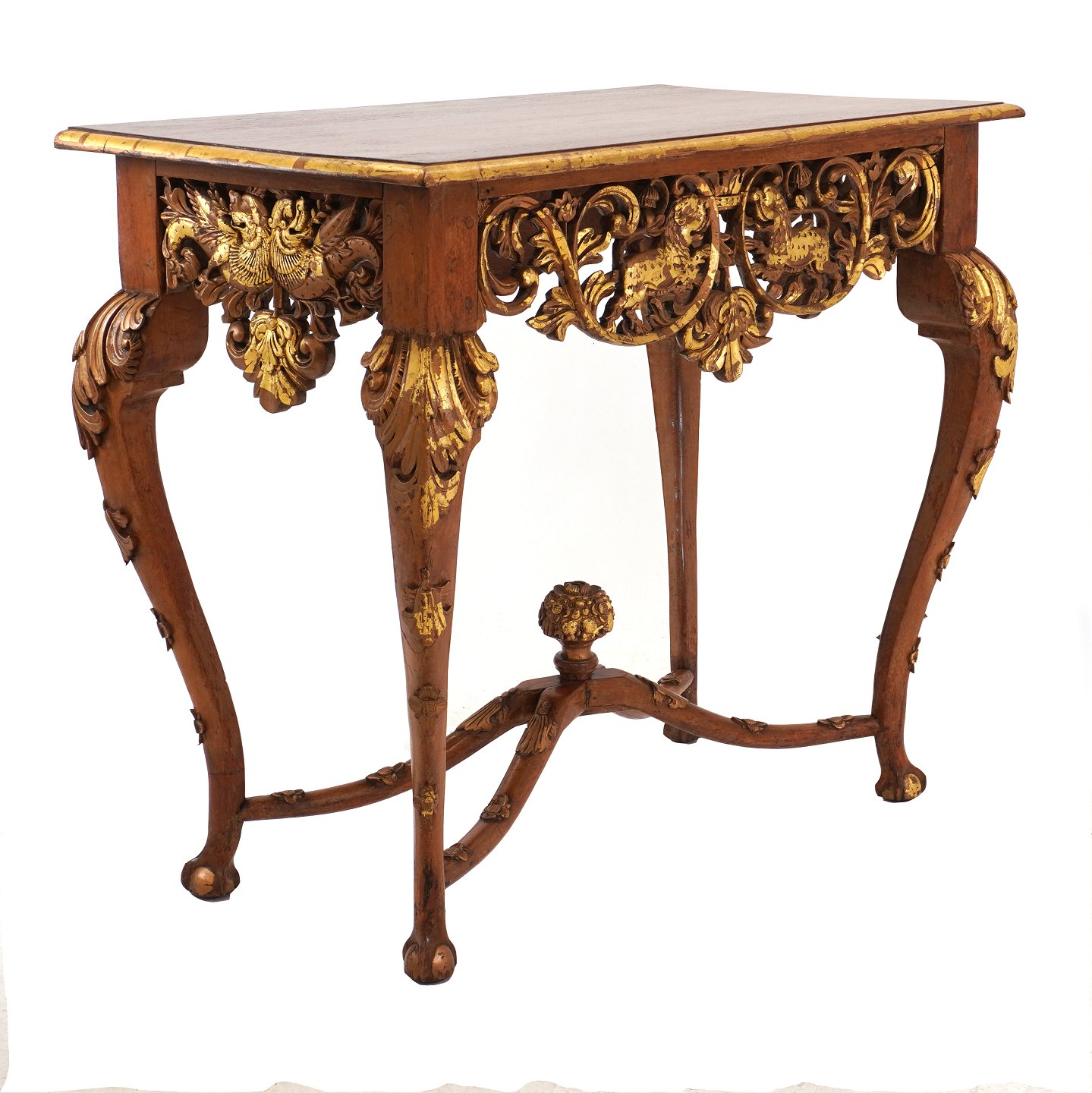 Richly carved and gilt Northeuropean Regence style console table H: 84cm. Top: 100x56cm Item number: 27492