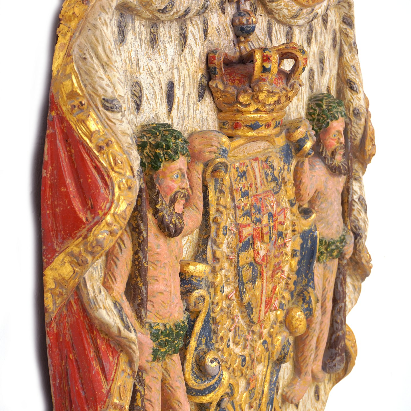 The Danish coat of arms from the period 1559-1699. Wood cut in the 19th century. H: 84cm. W: 51cm