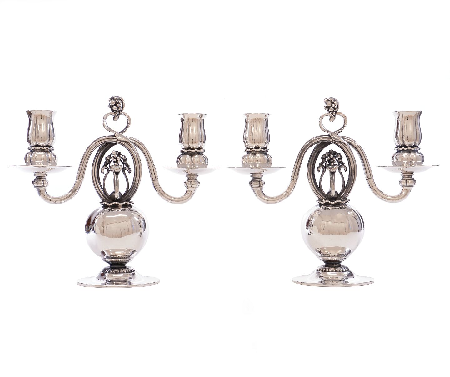 Pair of early Georg Jensen sterlingsilver candelabra 324 Designed 1919 H: 22cm. W: 25cm. W: 2.085gr Item number: 160