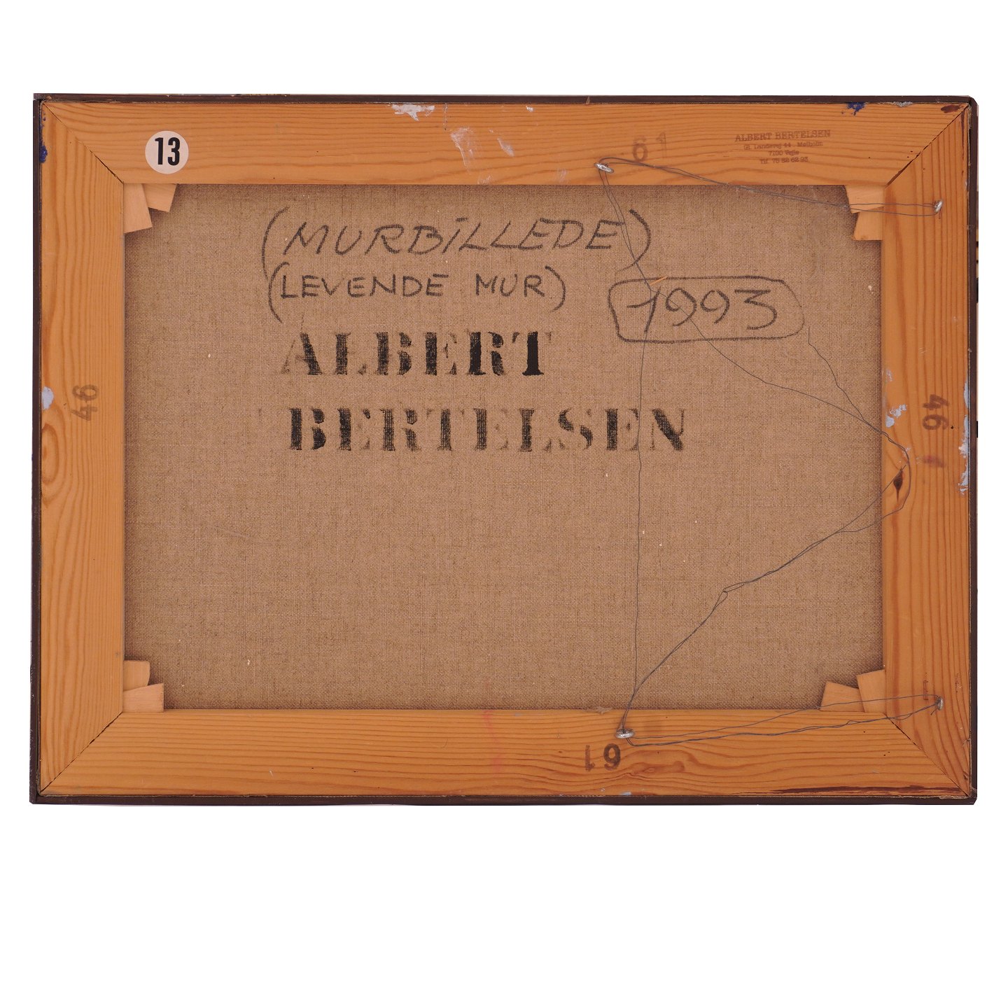 Albert Bertelsen, 1921-2019, olie på lærred. "Murbillede", "Levende mur". Signeret og dateret 1993. Lysmål: 46x62cm. Med ramme: 47x63cm
