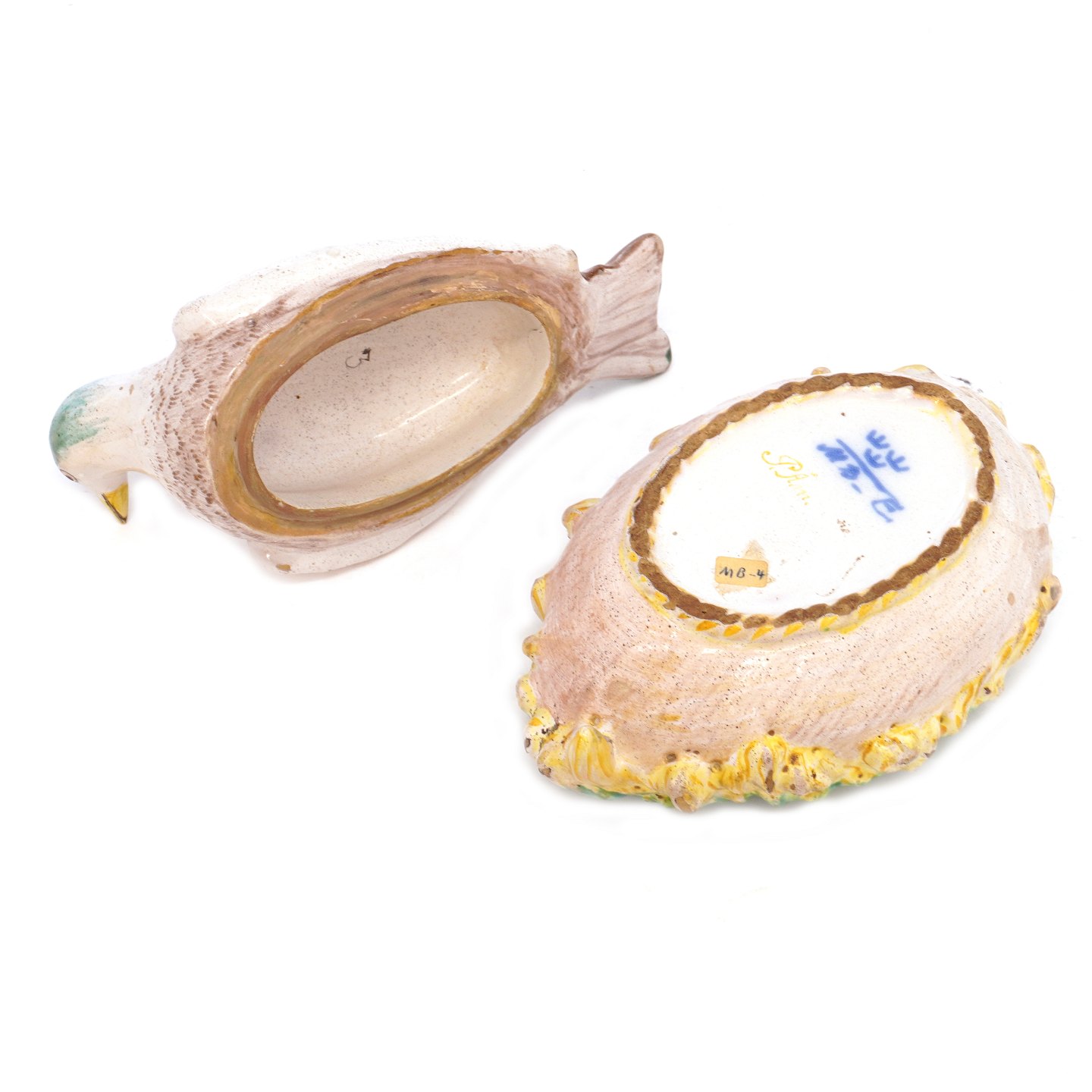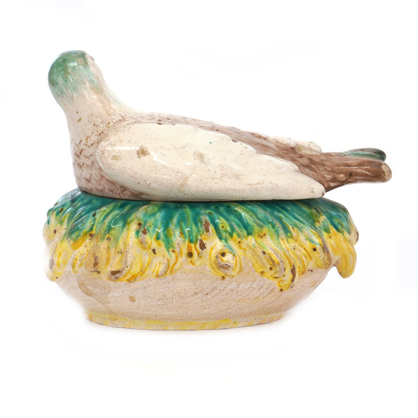 Small pigeon shaped faience tureen by Marieberg, Sweden, signed circa 1765