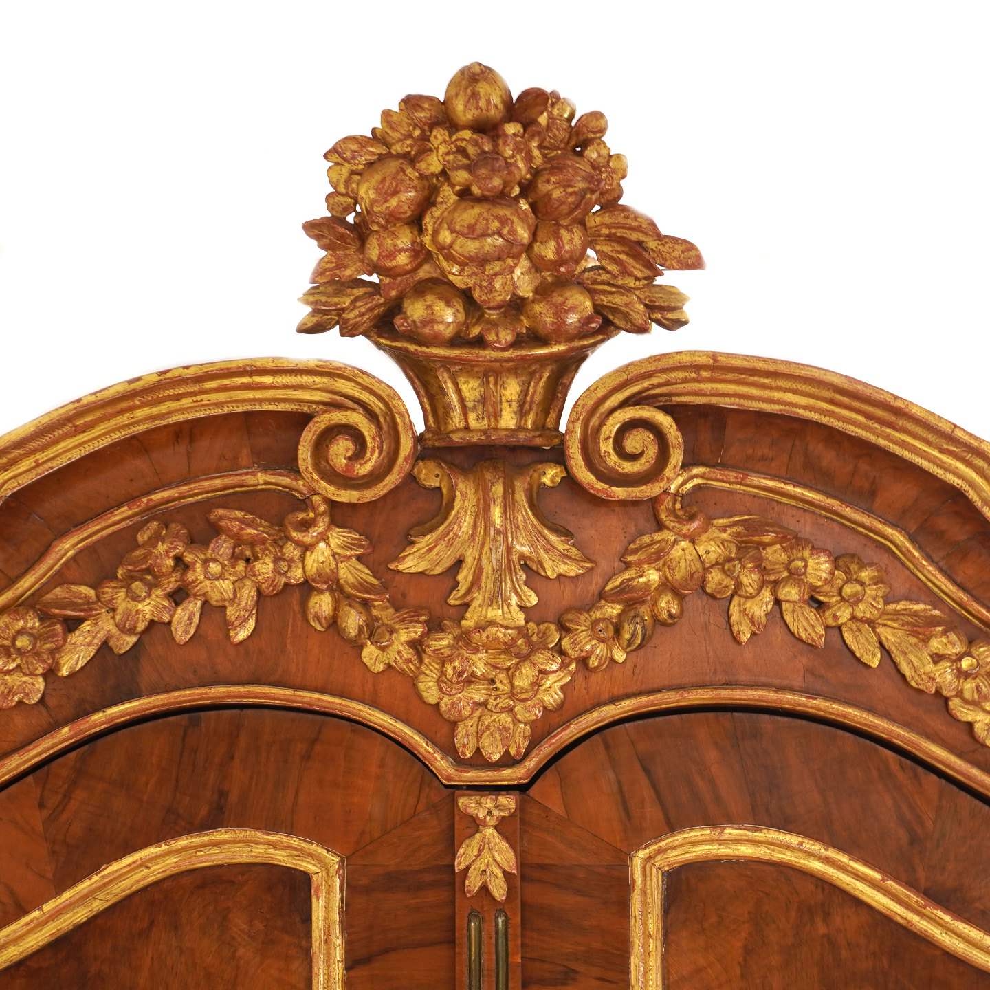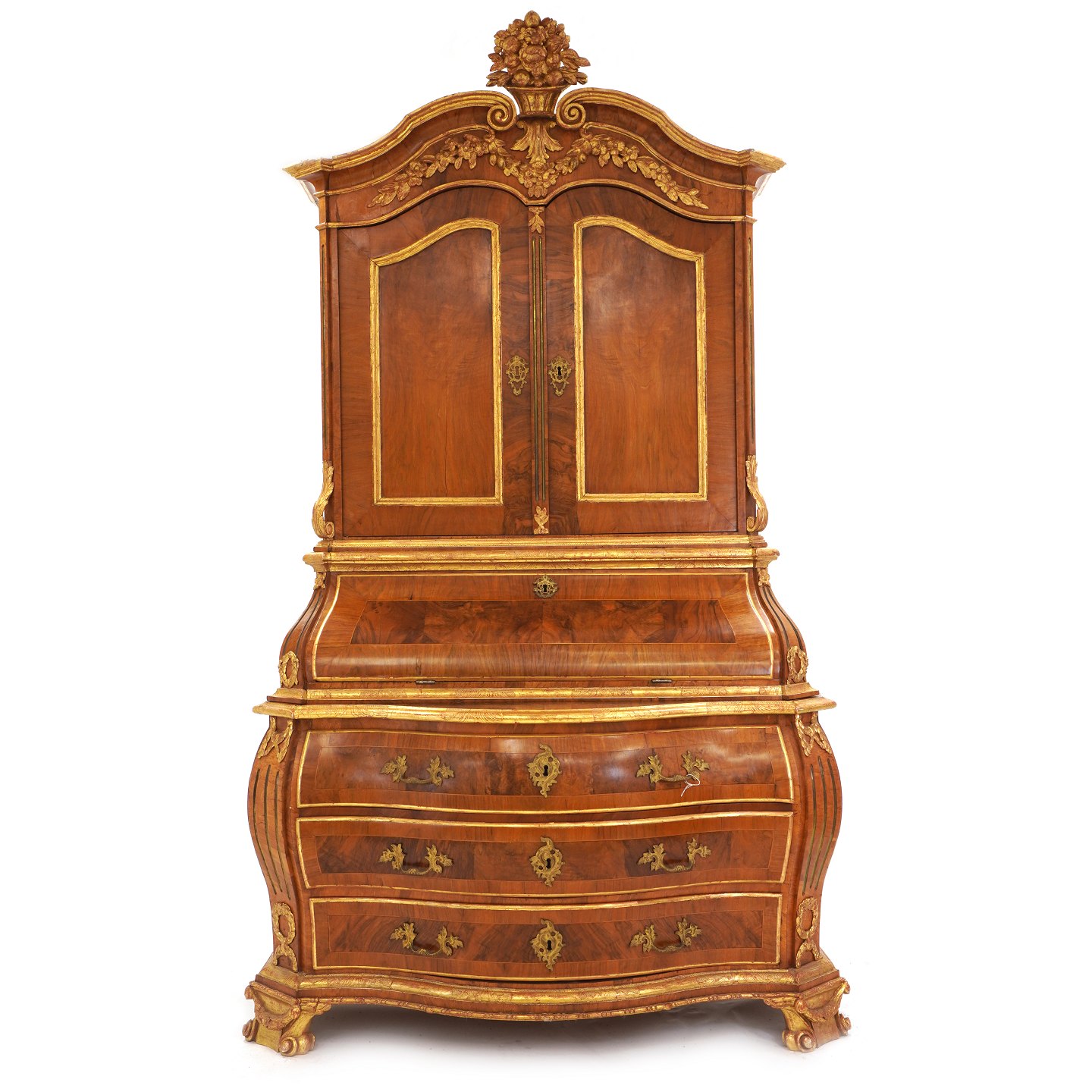 Danish Mid 18th century walnut and giltwood Rococo bureau. Denmark circa 1760. H: 248cm. W: 140cm. D: 70cm