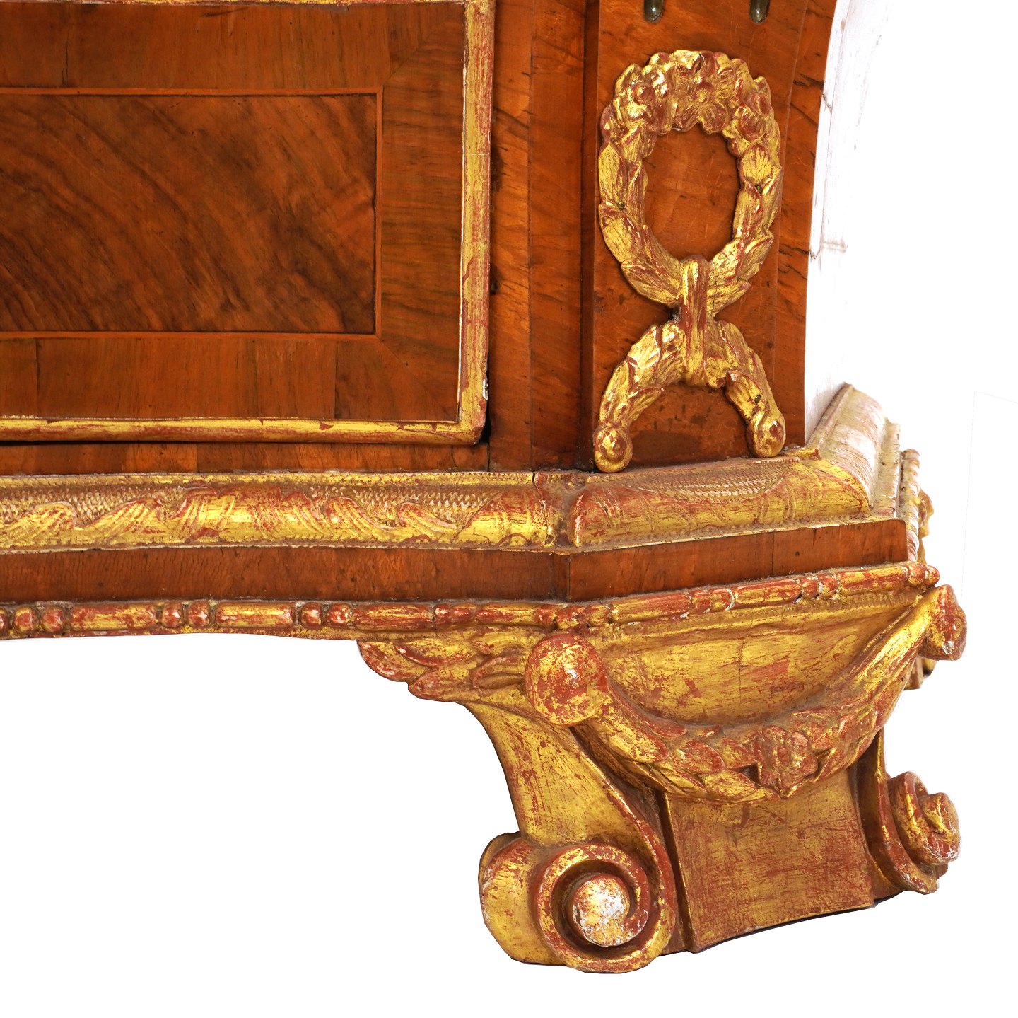 Danish Mid 18th century walnut and giltwood Rococo bureau