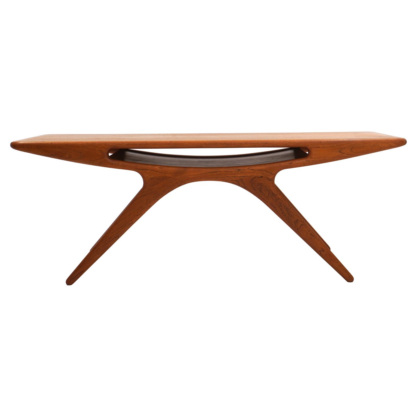Johannes Andersen, Denmark: "The Smile" teak table H: 49cm. Top: 52x135cm Item number: 253