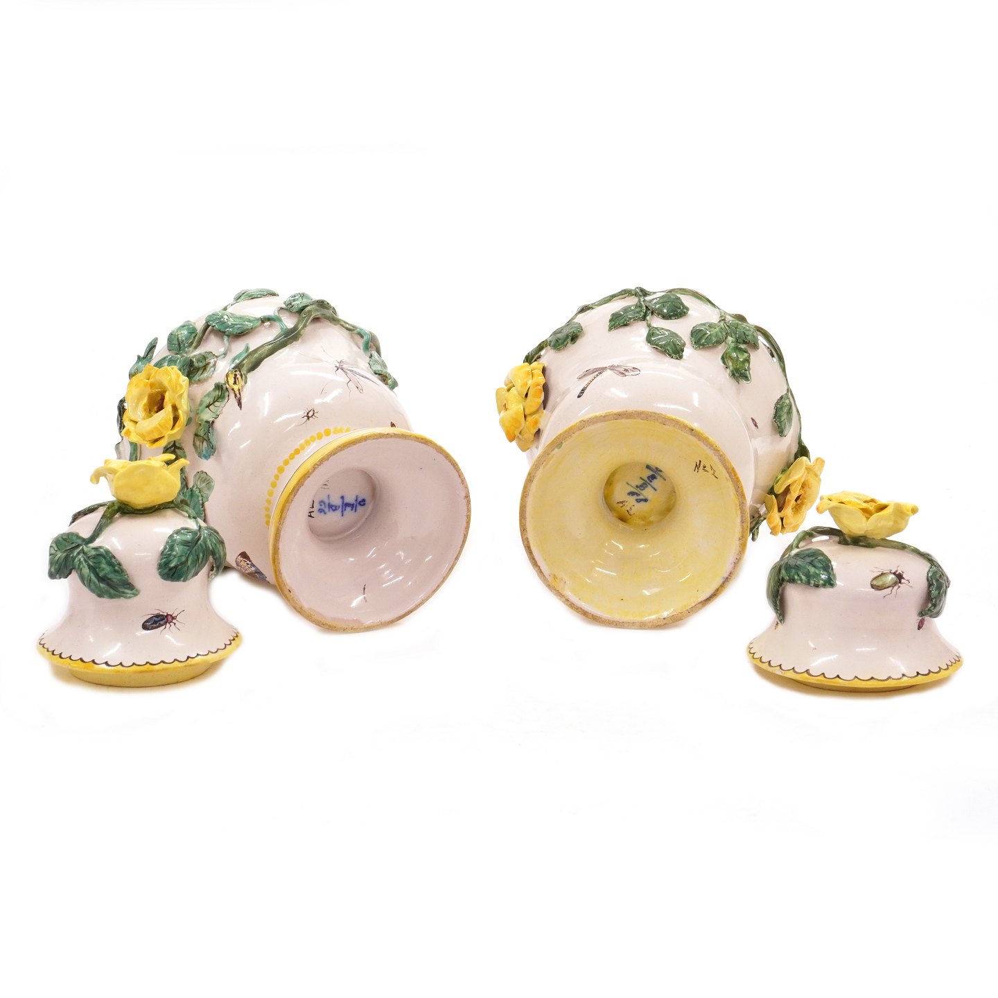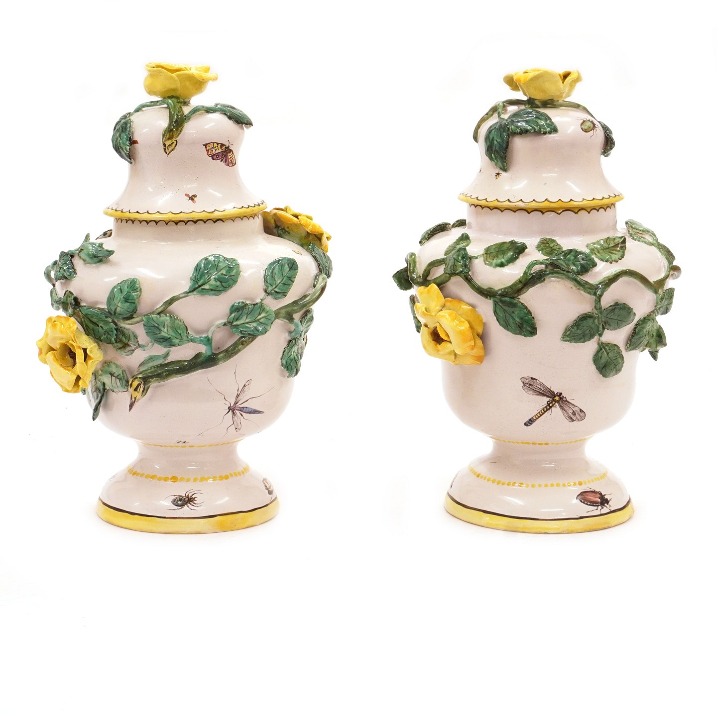 Et par polykrome potpourrivaser i fajance