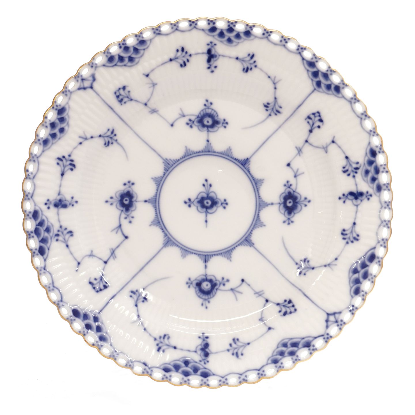 Royal Copenhagen musselmalet helblonde middagstallerken med guldkant 1084