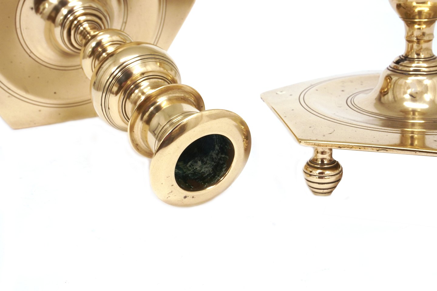 Par store tidlige danske barokke slotsstager i messing med sekskantet fod