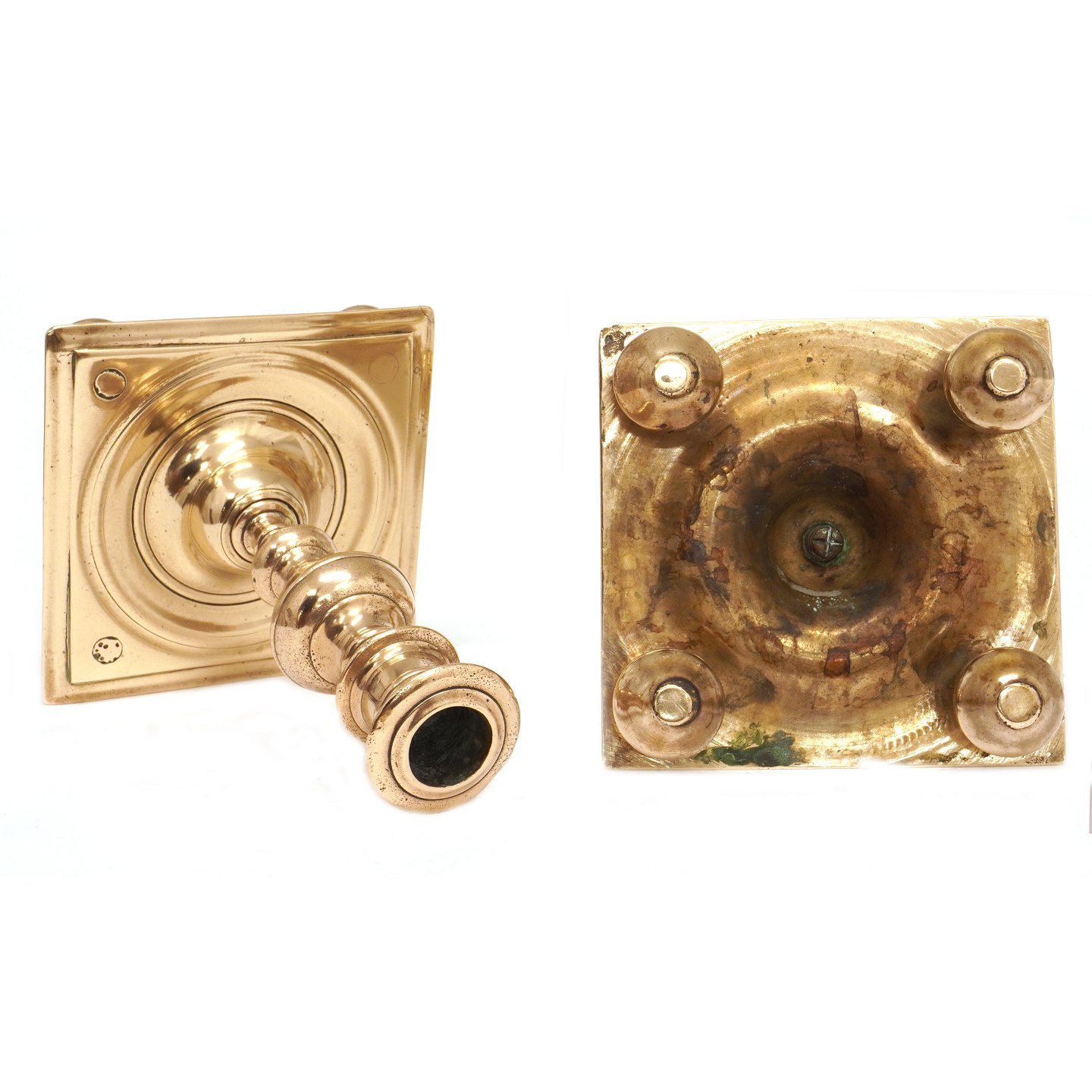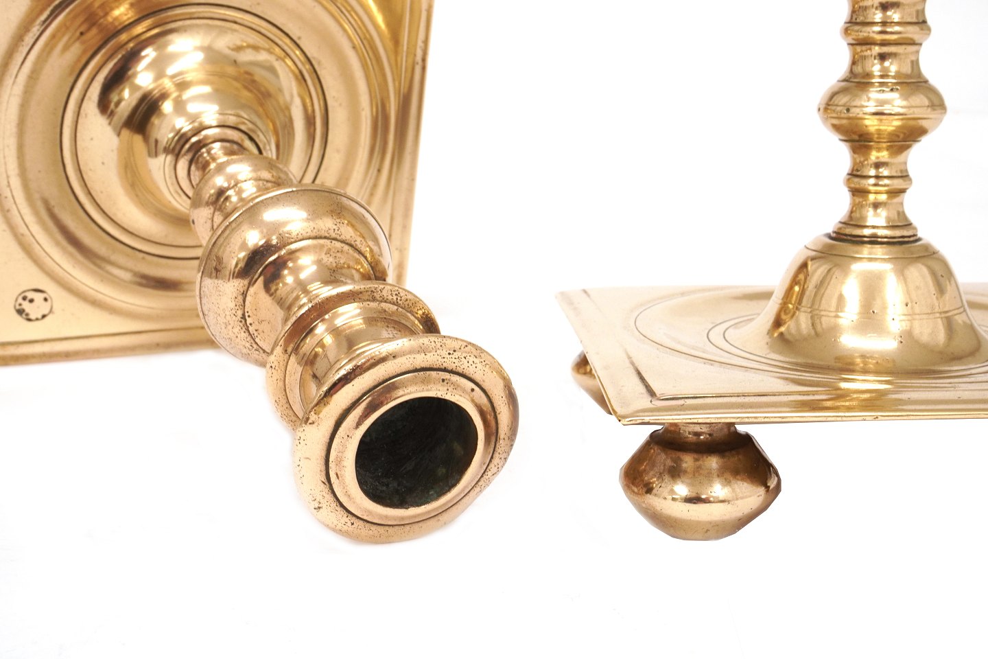 Pair of very large Danish Baroque brass "castle" candlesticks. Denmark circa 1750. H: 26cm