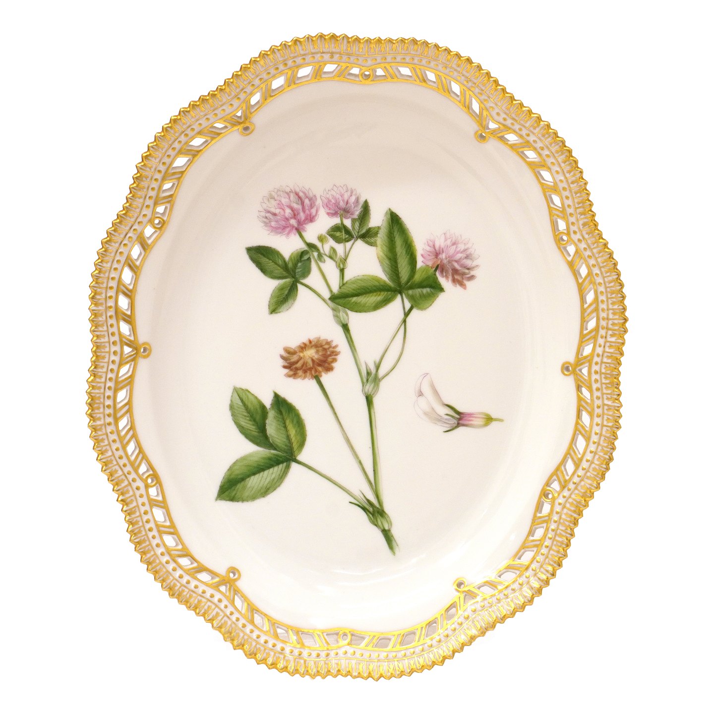 Flora Danica ovalt serveringsfad med gennembrudt fane 3537