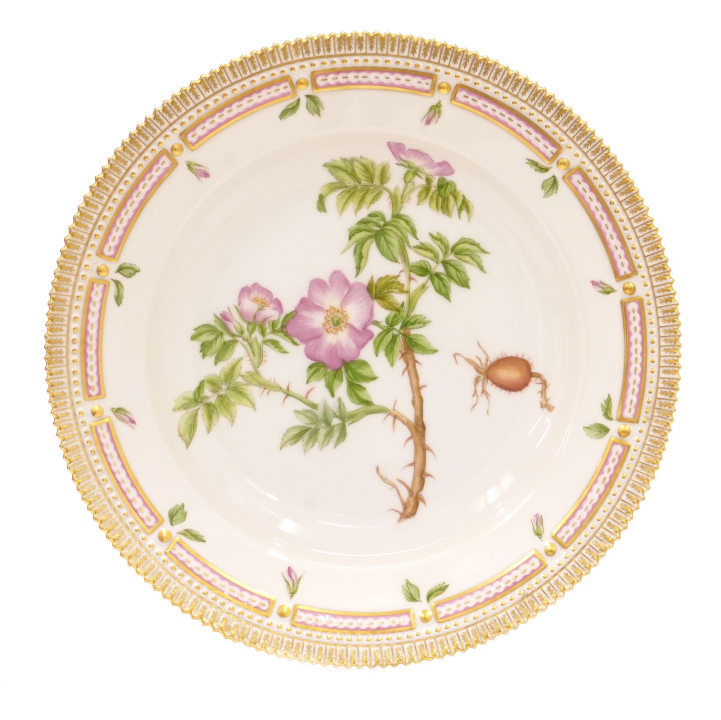 Royal Copenhagen Flora Danica plate 3549 D: 25,5cm "Rosa suavifolia Lightf."" Item number: 552