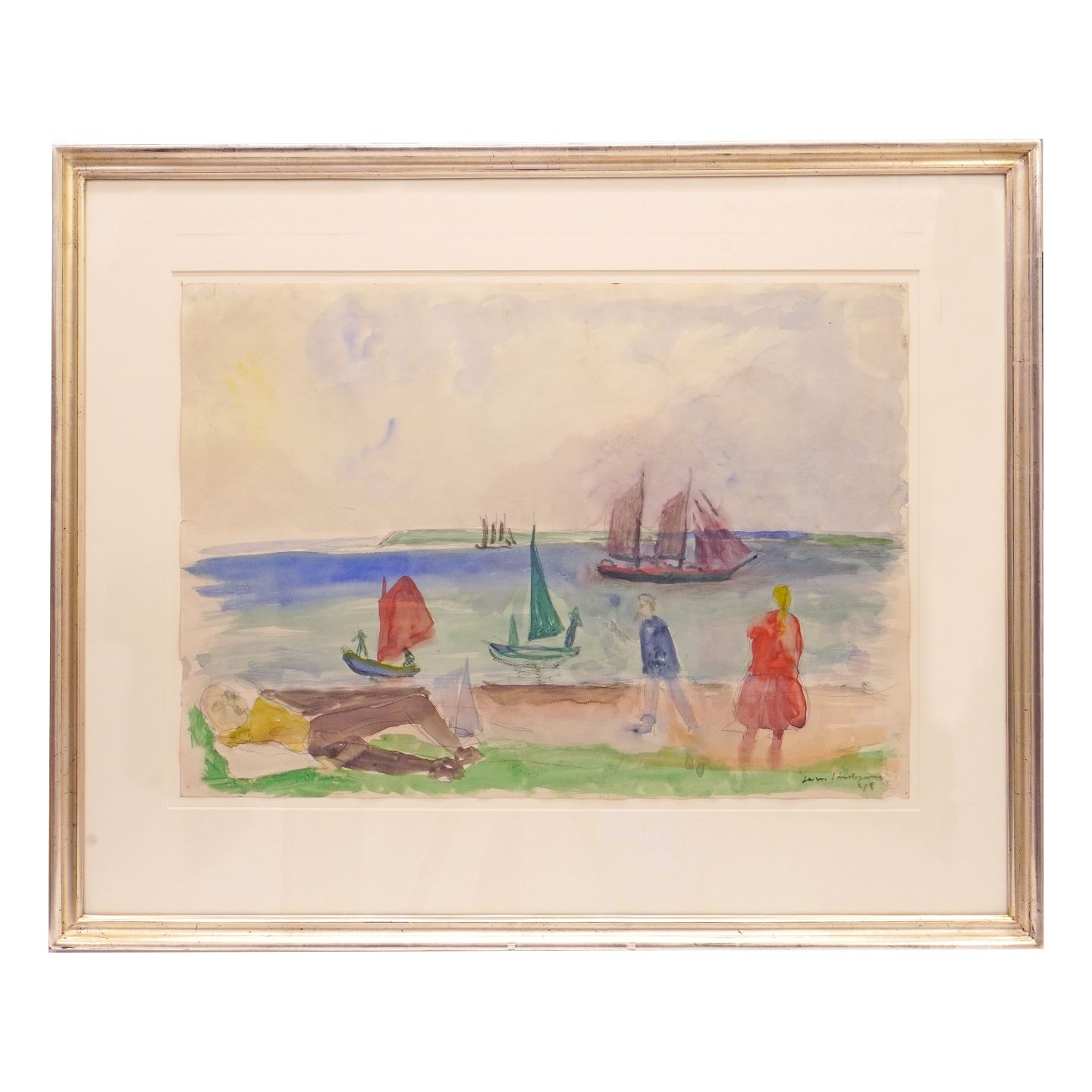 Jens Søndergaard, 1895-1957, water color. Landscape signed and dated 1945. Visible size: 44x62cm. With frame: 68x84cm