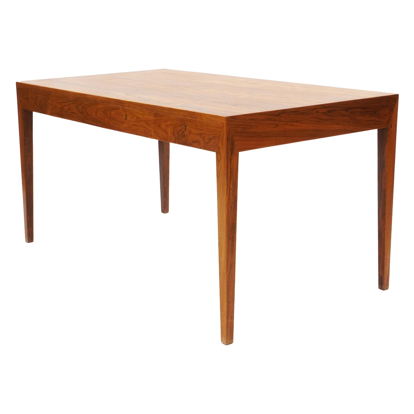 Rosewood veneered writing table by Severin Hansen, Denmark Manufactured by Haslev Møbelsnedkeri Nice condition H: 72cm. Plate: 75x143cm Item number: 586