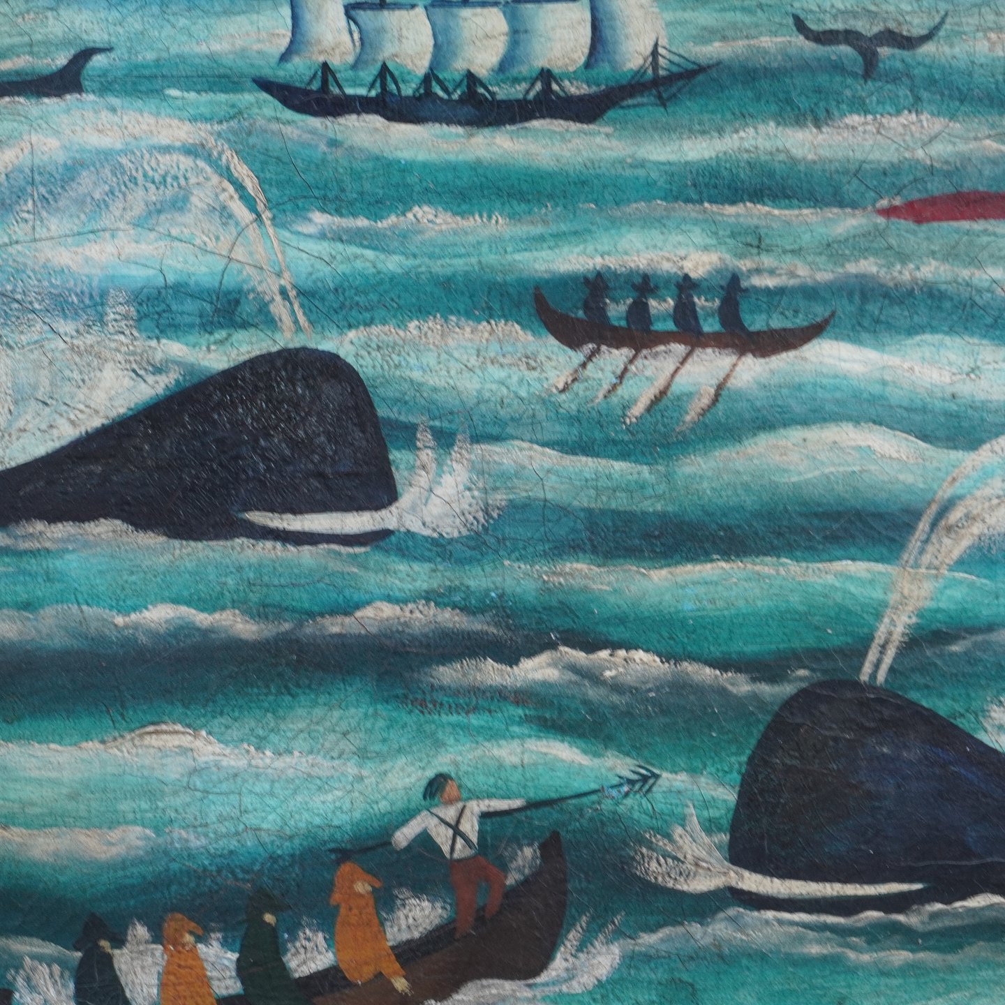 Seascape with whalers at Greenlands coast. Oil on canvas