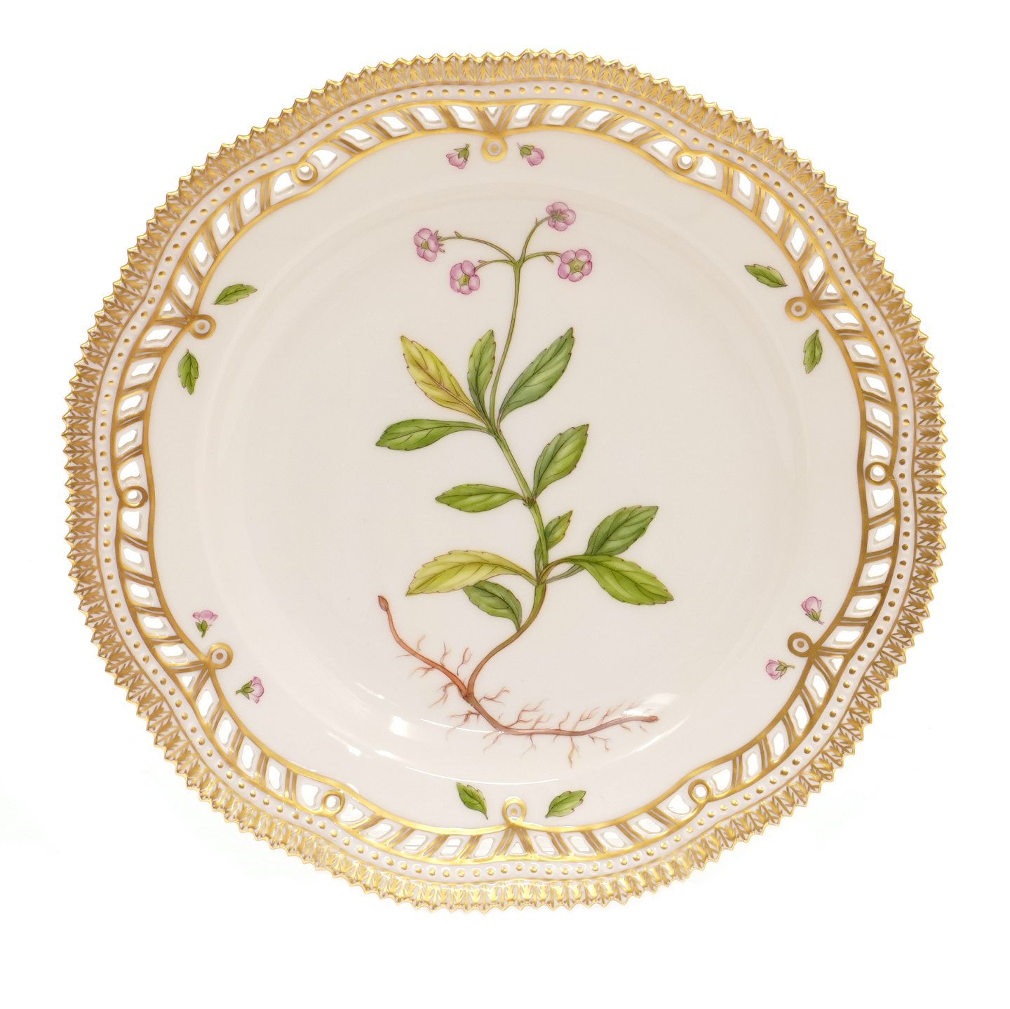 Royal Copenhagen Flora Danica middagstallerken med hvælvet og gennembrudt fane model 3553