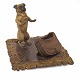 Stor wienerbronze i form af hund med taske på tæppe. Visitkortholder(?). Stemplet. H. 12cm. Base: 19x15,5cm