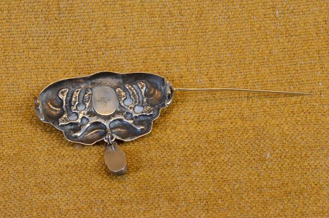 Broche skønvirke, Jugend, Art Nouveau af organisk mønster i sølv med perle af grøn agat i centrum af broche og på spidsen af vedhæng. Stemplet 830. Art No. 4