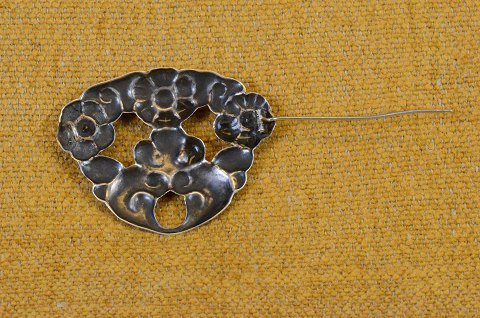 Broche skønvirke, blomsterranke i sølv med røde flusser. Art No. 9