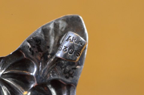 Broche med blomster i sølv og kerne af tyrkis keramik. Skønvirke inspireret. Stemplet ARK 830S. Aksel Rasmussen Kert Art No. 12