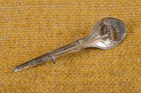 Broche skønvirke af sølv med rav. Stemplet 830S. Art.No. 13