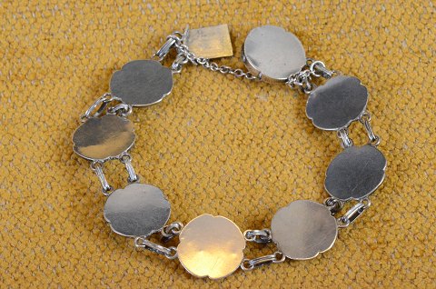 Bracelet art nouveau silver with closed back. Flowers made of in silver with center decoration by green agate. Str .: 21 cm. Art No. 41