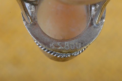 Cameo ring of silver with lady head cut off conch. Stamped 800 "BS" - B. Sanderstrøm - Copenhagen 1898 - 1948 Str .: small