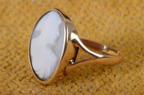 Camé ring af guld med romersk hoved skåret af hvid konkylie monteret i guldring. Str.: middel Art No. 51
