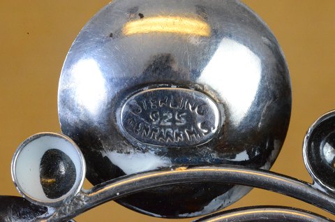 Broche af sølv udformet som en blomstergren. Stemplet Sterling H.S. Denmark, Herman Sierbøl. Str. 4,5*4,5 cm Art No. 70