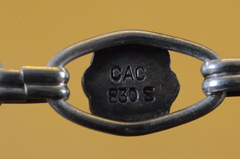 Collier halskæde artikuleret i ovaler vedhæftede sølv blomster, samlet med dobbelte samlinger. Stemplet 830S CAC. C.A.Christensen Eftf - København 1937 - 1947. Str.: L: 46 cm * H: 1 cm. Art nr 75