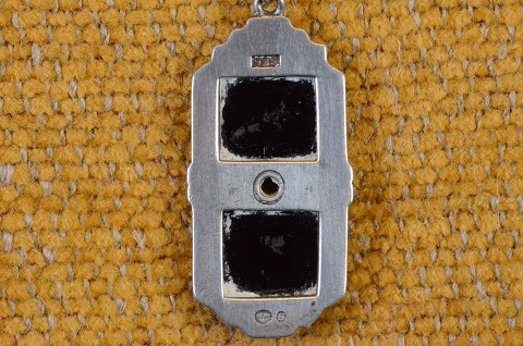 Art Deco Pendant with onyx and diamond silver mounting and silver chain. Silverstamp 3 crowns S. Str .: pendant 2 cm * 1.5 cm chain 24 cm. Art No. 84