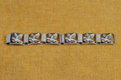 Sølv armbånd, leddelt i 6 dele, hver dekoreret med fredsduer med en kvist fra oliventræet i næbbet. Stemplet 830S. Str.: 18 cm. Art No. 90
