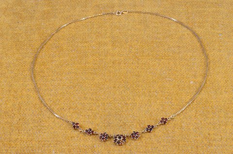 Garnet collier necklace with rose cut garnets. Necklace with a large center flower flanked by 3 small flowers on each side ending in the Box chain. Size: 50 cm. Art. No. 92