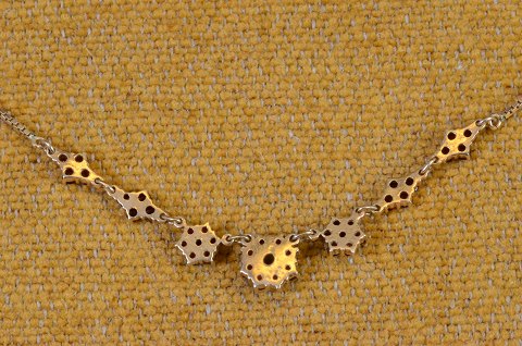 Garnet collier necklace with rose cut garnets. Necklace with a large center flower flanked by 3 small flowers on each side ending in the Box chain. Size: 50 cm. Art. No. 92