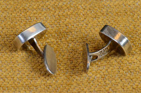 Manchetknapper med onyx. Stemplet 925S HFH (.Hans Fr. C. Holm - Hobro 1944 - 1992) Str.: 1,5*1,3 cm. Art. No. 100