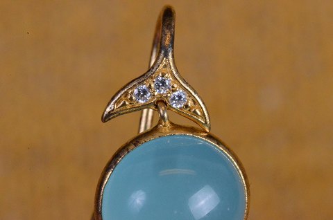 Earrings with hanger and socket in gold plated silver and pale blue and clear stones. Stamped 825 JS. Size: l 1.8 cm Art.No. 108