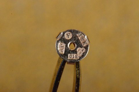Ørestikker i guld med dråbeformet perler. Stemplet 18 K 3-kroner (Serige). Str.: L 2,5 cm Art. No. 109