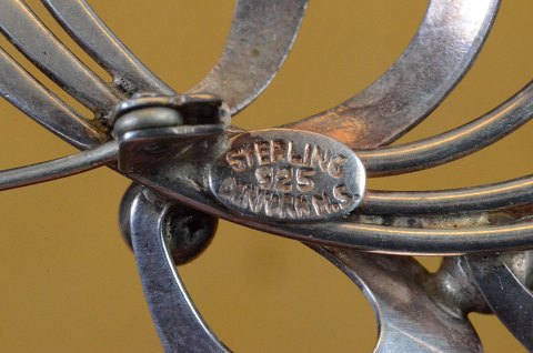 Broche af sølv, vintage design af 3-dimensionel bladmønster. Stemplet 925S Denmark HS (Herman Siersbøl). Str. L 5 cm. Art No. 119