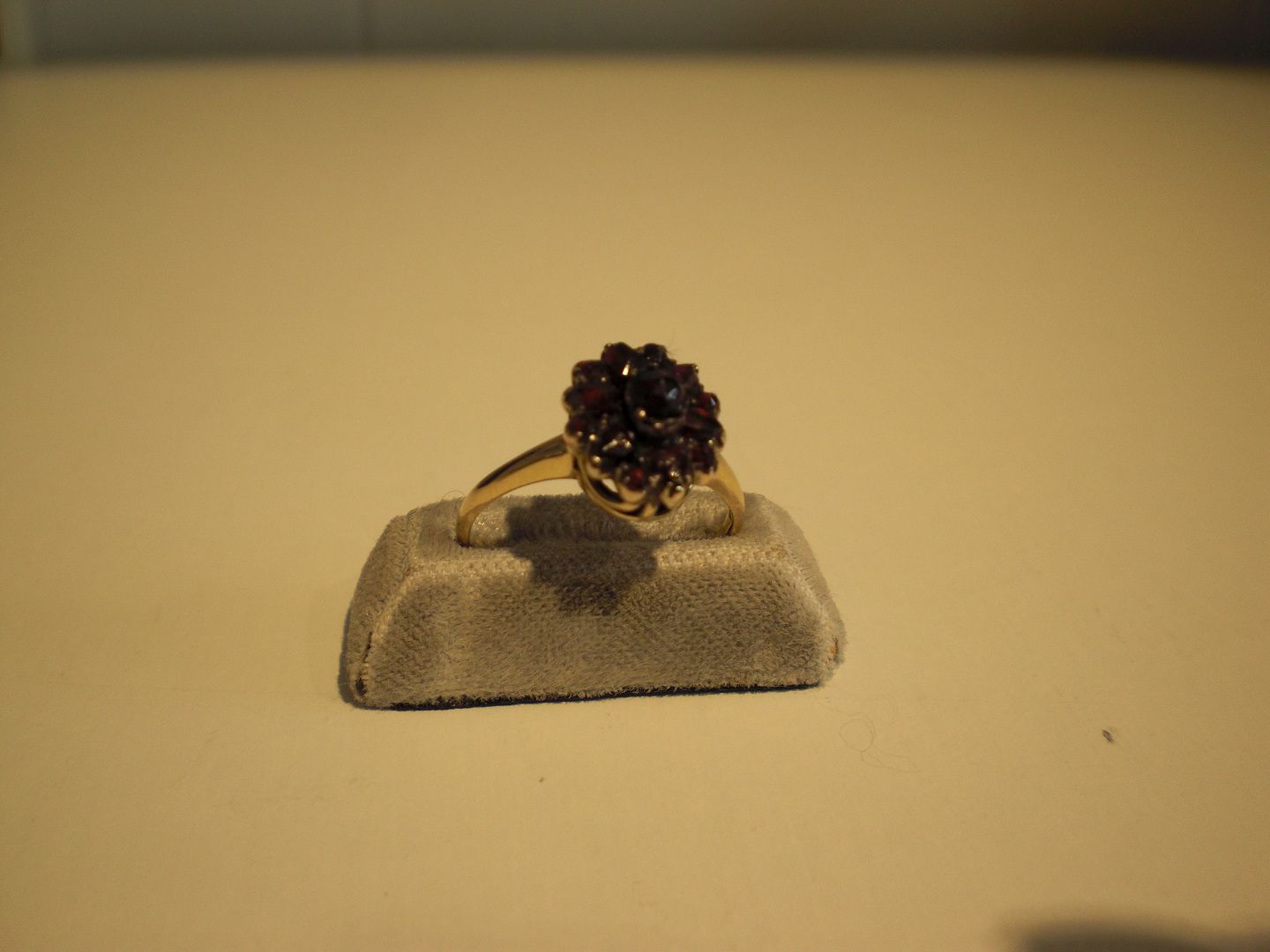 14 kt. guldring med 13 små og større granater uden mesterstempel - str: 53. Ca. 1950 i fin stand.