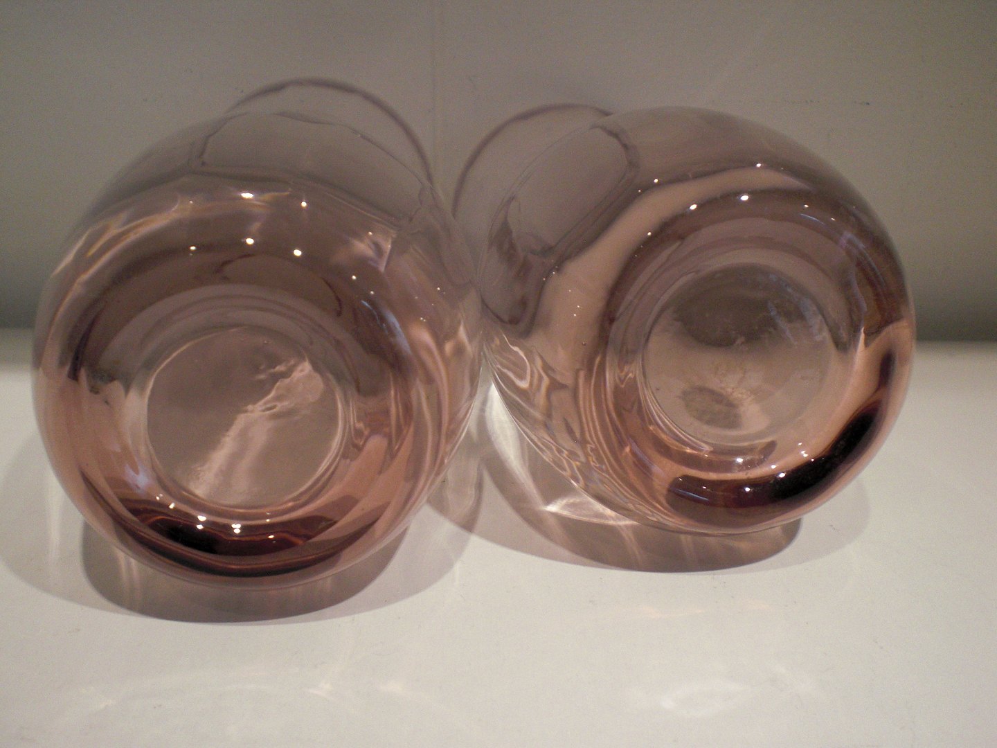 2 lyse manganfarvede hyacintglas designet af Jacob Bang (1895 -1965) for Holmegaard ca. 1950. I fin stand med originalt fabriksmærke.