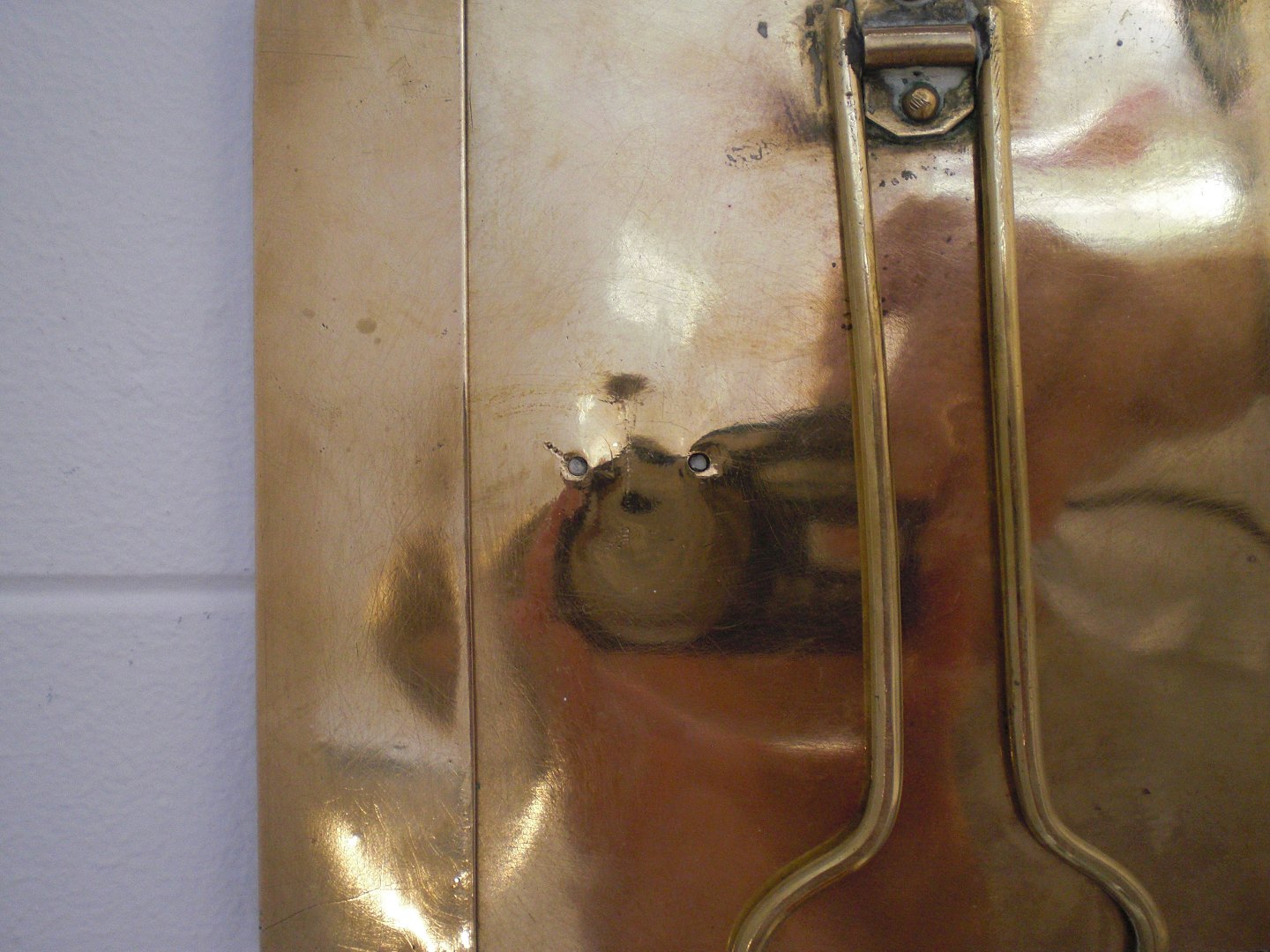 Glat, vandret, Mogens Ballins Eftf, tinramme med messingbagplade og stander. Stemplet HB, Danmark i oval Efter 1919. Ikke i Vejenbogen. I fin stand, med let slid, nyere skrue indsat - vendt tidligt fra lodret til vandret stander. Ydre mål: 15,2,6 x 11,5 cm.