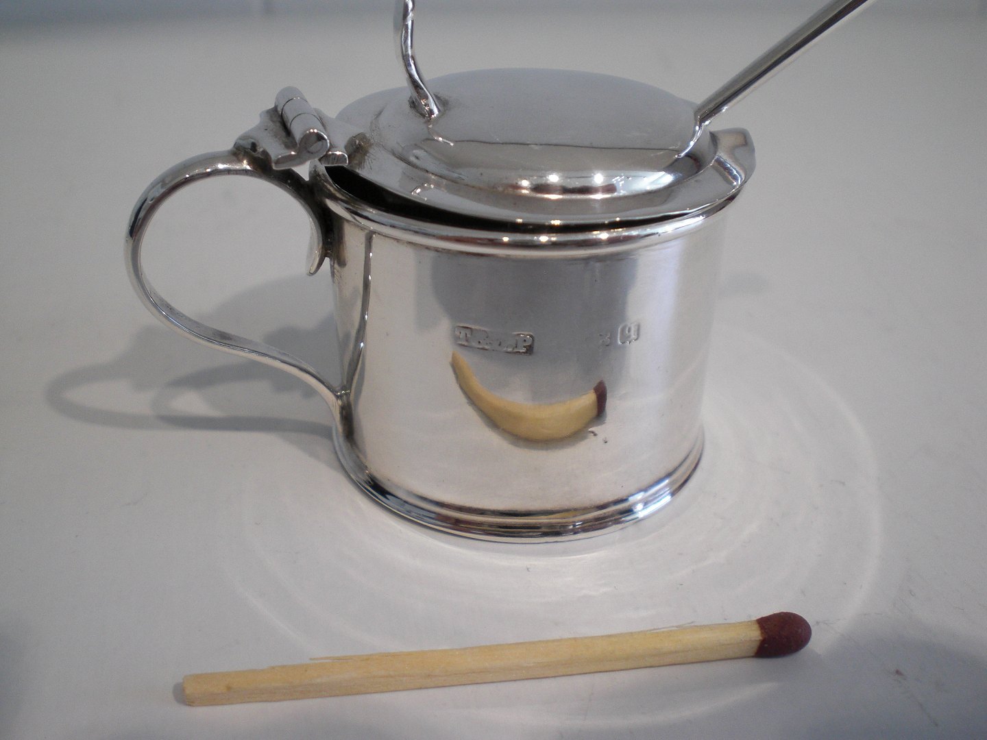 Lille Engelsk saltkar fra 1915 med facetslebet glasindsats i sølv - stemplet både i låg og kar T&JP= Joseph taylor & John Perry (1833 - ?), Birmingham. Medfølgende saltske er ustemplet. Vægt uden ske og glasindsats: 21,8 gram. Højde m. stjert: 4,3 cm. Diameter bund: 3,8 cm. I fin stand med alderstypisk slid. 400 kr. Stjålet.