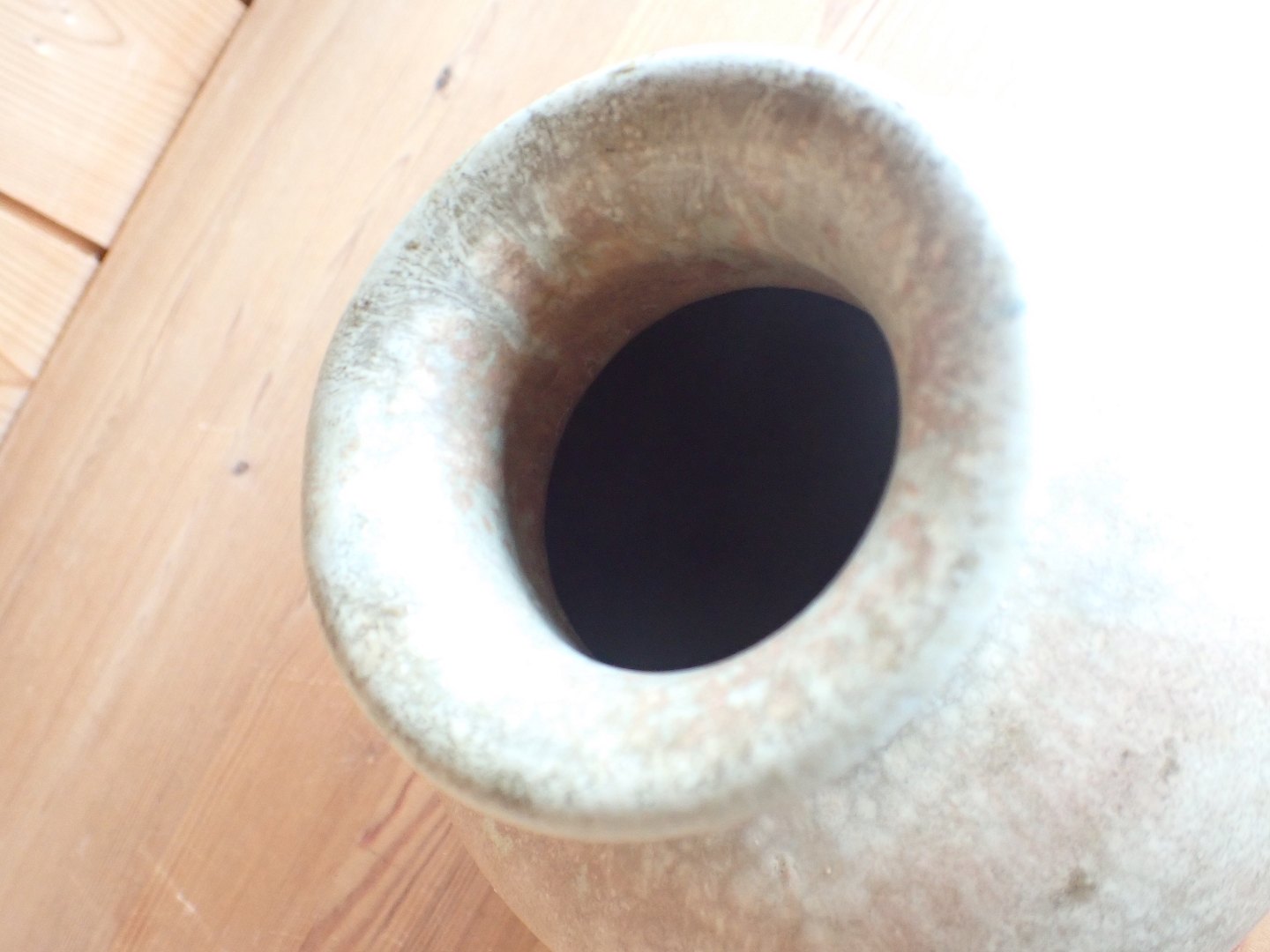 Carl Halier (1873 - 1948) - stentøjsvase rund med smal hals med krave og med beige solfatare glasur fra eget værksted (1926 - 1930) Dateret 1927, ovnmærket,, initialer KH, #143. Højde: 15 cm. Bredeste diameter 15 cm. I fin stand.