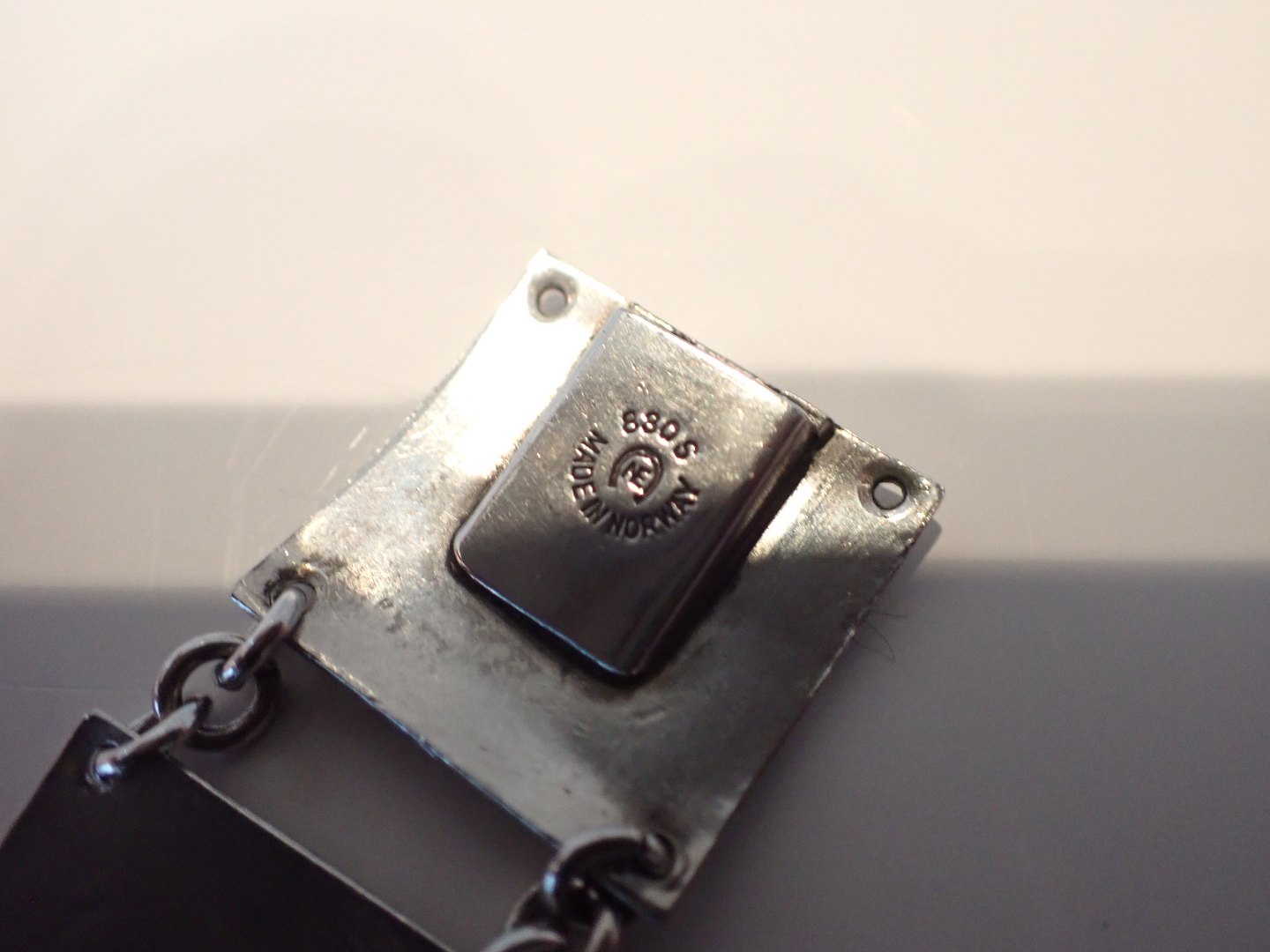 Nils Elvik, Oslo (1853 - 1948) - leddelt skønvirke armbånd i 830 sølv. Ca. 1920. Længde: 16,5 cm. Bredde: 2,8 cm.Vægt: 22 gram. I pæn tidstypisk stand.