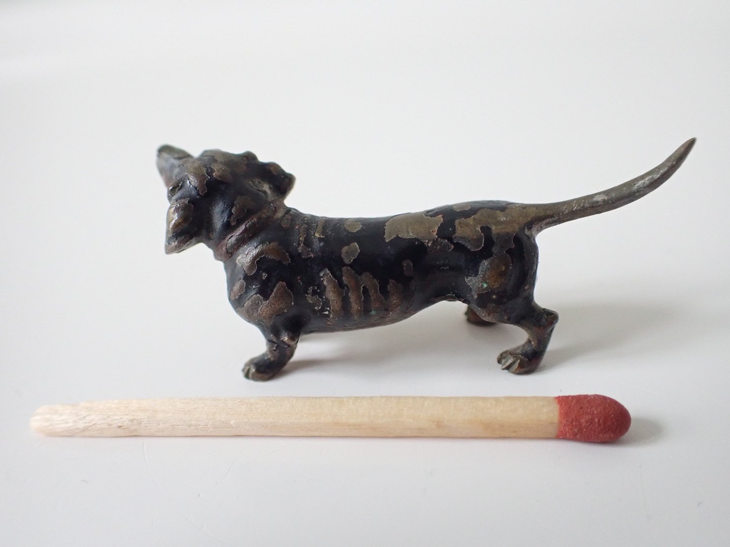 Wiener bronze - miniature koldmalet gravhund. Stjålet ved simpelt tyveri.