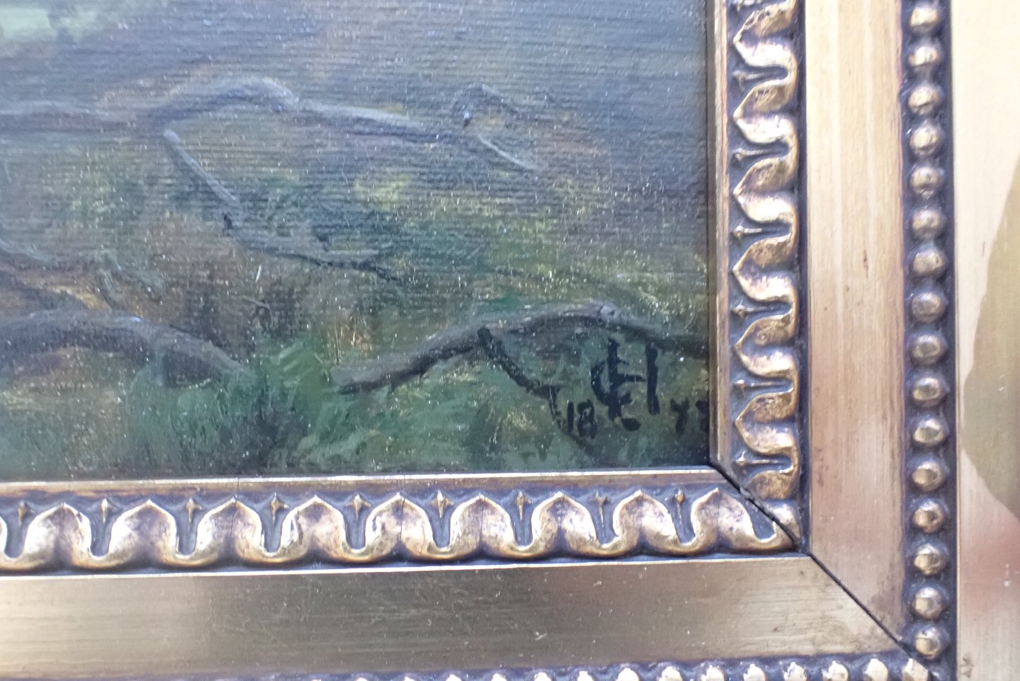 Carsten Hentichsen (1824 - 1897) - indrammet maleri. Olie på lærred. Signeret med initialer CH 1871. Fuld signeret på bagsiden med beskrivelse : "Parti af Dyrehaven med udsigt over Sundet".Børn i forgrunden. Formodentlig daværende udsigt over eksisterende hus nær strandvejen ved Springforbi. Mål: 29 x39 cm. med ramme: 39,5 x 49,5 cm. I fin nyrestaureret stand af professionel konservator.