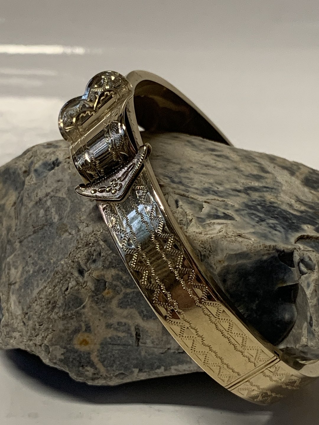 A really beautiful vintage bangle in 14 carat gold with the finest cesels. The bangle is opened/closed by the push-in clasp on the side.