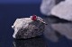 14 carat gold ring with red faceted ruby ​​and diamonds. Stamped 585.